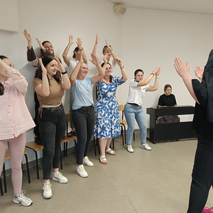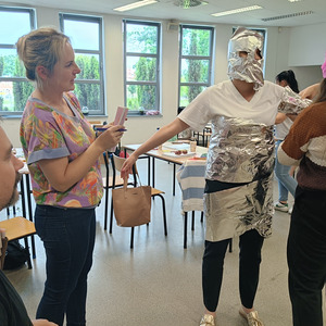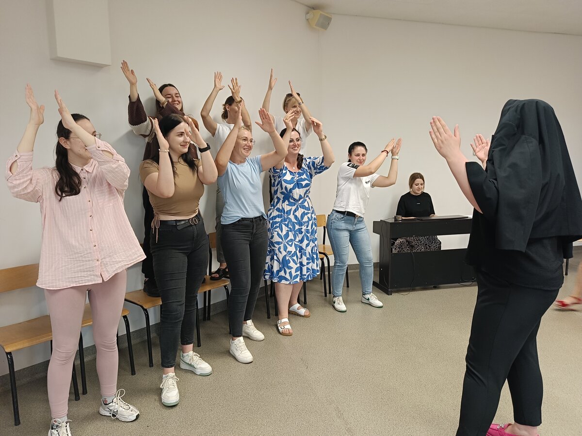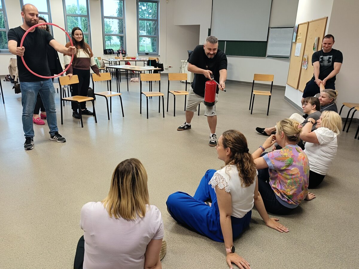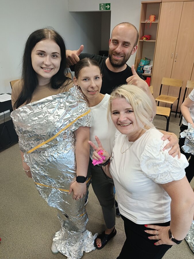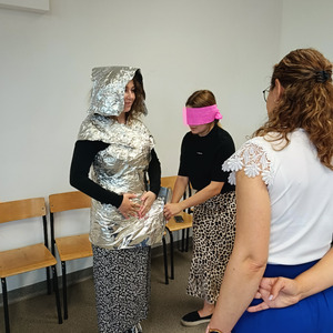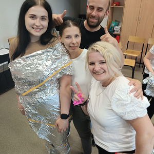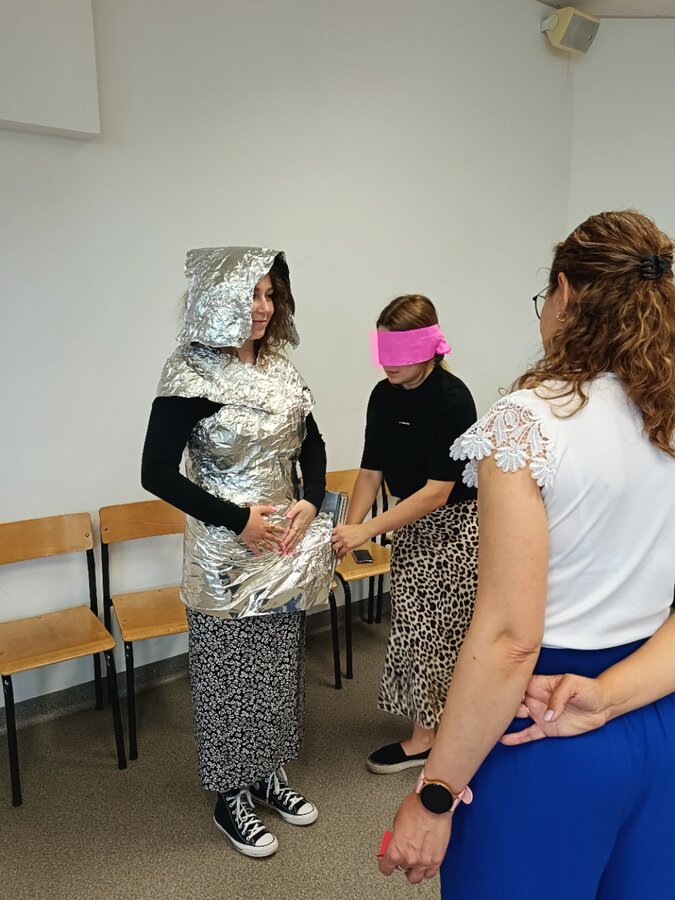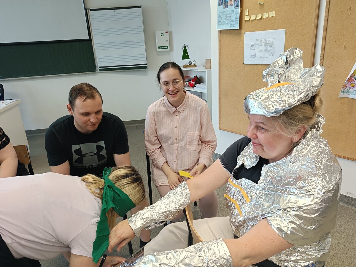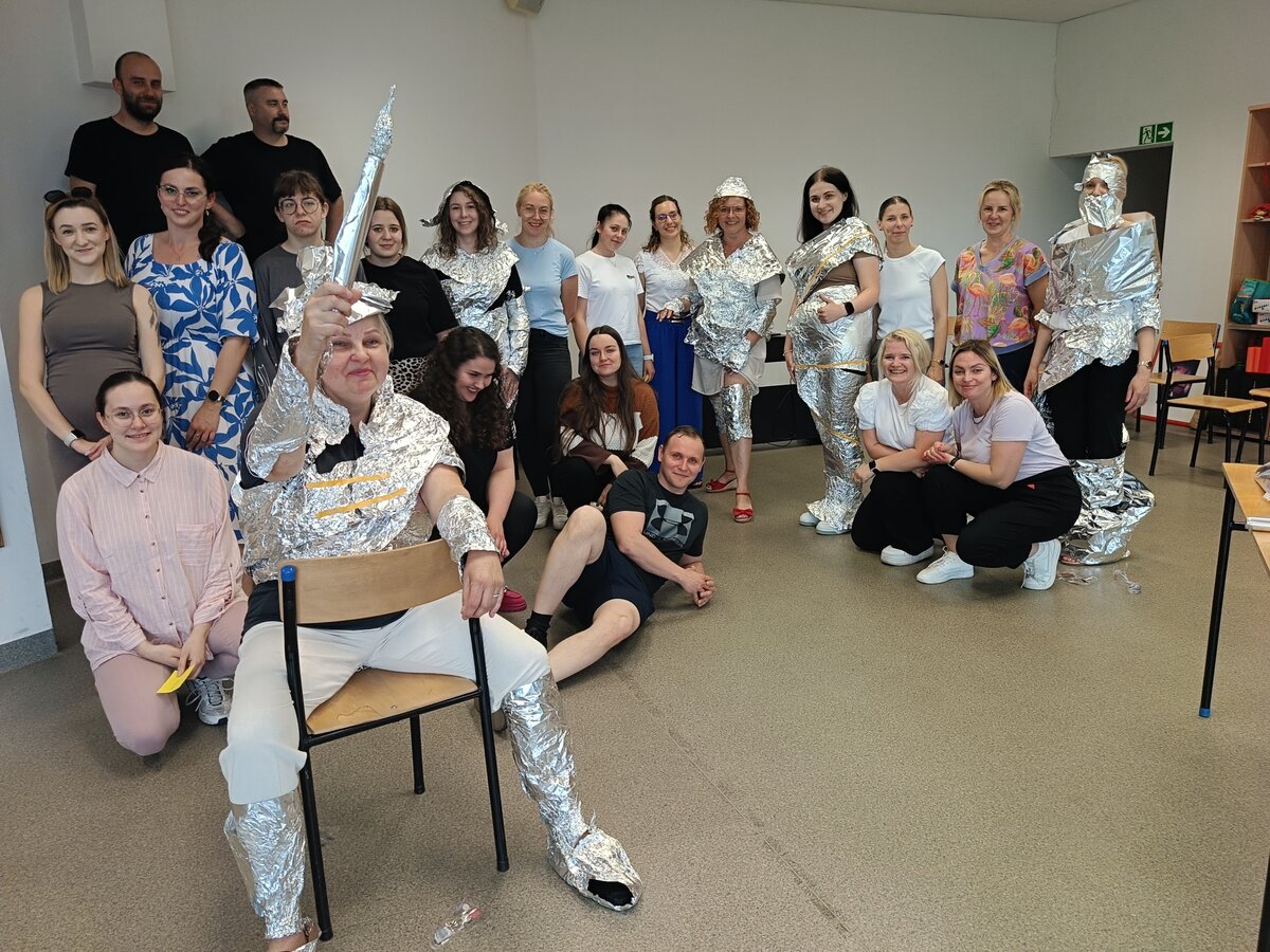 Być członkiem chóru, bohaterem obrazu słynnego artysty, zamienić się w rycerza, a może kogoś innego? Najważniejsze, to umieć współpracować i działać zespołowo. To ćwiczyli na ostatnich zajęciach (27.06.2025) z pedagogicznych warsztatów zawodoznawczych studenci I roku pedagogiki, studiów uzupełniających magisterskich. A może rozpoznajecie obraz przedstawiony na ostatnim zdjęciu?